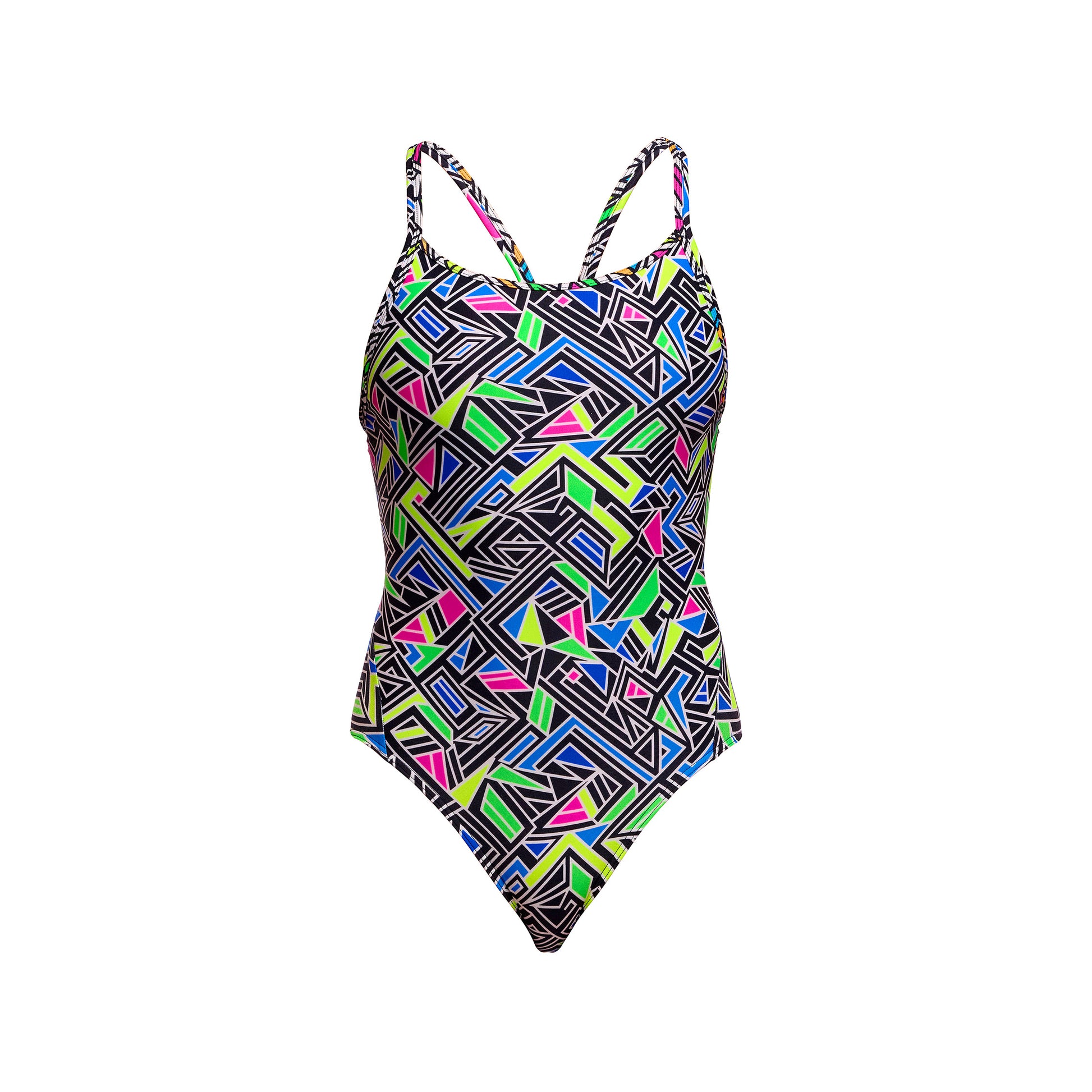 I’m the OG Funkita one piece that has been around since day dot and without bragging, continue to remain the most popular style. Modest rear coverage, double bind shoulder straps, supportive fabric panel across back. 100% chlorine resistant.
