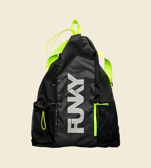 - Made from tough nylon & mesh that won’t have a problem getting wet and will be durable for the hours on pool deck while you train.